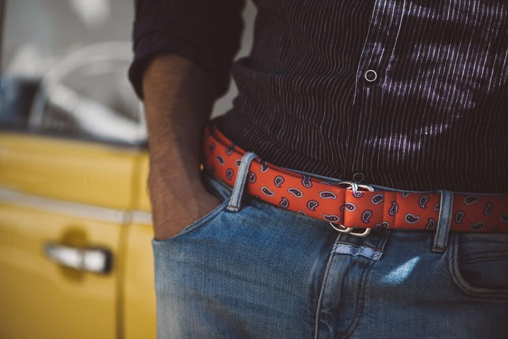 Seide designed und produziert in Italien, durch Handarbeit in München zum Gürtel vollendet.